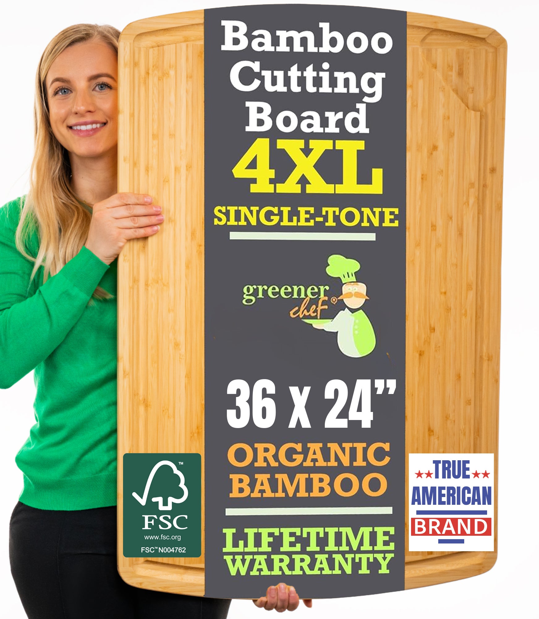 Greener Chef Bamboo Cutting Board - Single-Tone